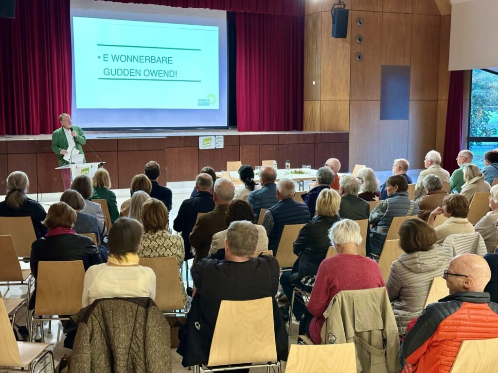 Our board member Gaby Damjanovich, together with Déi Greng Seniors, invited our Vice Chair Christa Möller-Metzger and exciting Luxembourg experts to an event on the Day of Older Persons in Luxembourg. In the morning, Christa was interviewed at 8 a.m. in the RTL studio. When does one actually become old? What can be done to combat loneliness? Why is soil sealing dangerous? The most important statements were repeated throughout the day in the news. As a result, many older people came to the evening event to learn more about age-friendly cities, with almost 70 listeners gathering in the Bürgersaal in Walferdingen.